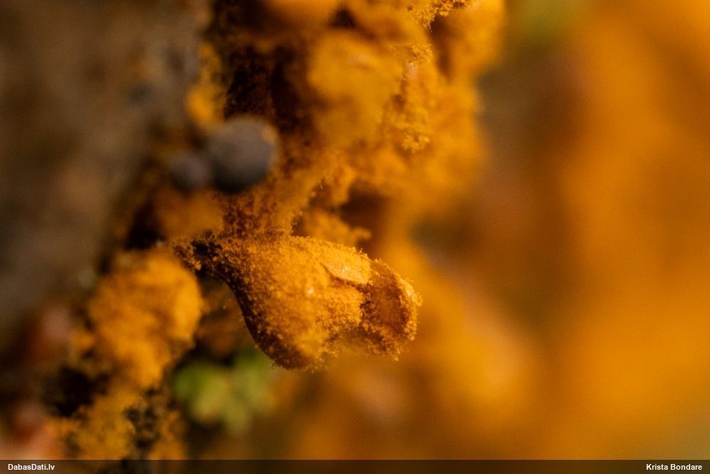 Paldies, Raivo! Ar acu gaišumu man arvien sliktāk, bet mikroskops palīdz. Jā, gribēju teikt, ka paraugam, ja vien nav kāda jutīga atradne, kurai drīkst ievākt tikai mazu gabaliņu, vērts ievākt lielāku gabalu, jo gļotsēnēm patīk kompānija. Un mikroskopa mazajos palielinājumos ar sānu papildus apgaismojumu ir vērts rūpīgi "izstaigāt" visu paraugu. Arī ķērpjus un interesantas sīksēnītes tā var atrast, ko dabā nepamanītu. Ar kriksītēm ir dažādi - pirmās es tā arī tikai citu sugu paraugos pamanīju, bet vēlāk redzēju arī dabā kriskīšu plantācijas - ja to ir daudz, tad var pamanīt jau dabā. Uz sūnām gan ir ekstrēms gadījums, dabā droši nepamanītu, arī eksemplāra noņemšana no sūnas nebija pārāk veiksmīga, tāpēc par noteikšanu mazliet šaubos (sporām mazliet cits tonis). Bet pagaidām citas hipotēzes nav (un konkrētā eksemplāra arī vairs ne).