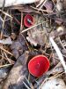 Man pēkšņi radās ideja - vai tur bija nu ļoti mitrs mikroklimats, egle ar melnalksni? Hipotētiski tādas dzeltenas var būt Diachea muscorum. Te bilde ir mazliet līdzīga: https://fr.wikipedia.org/wiki/Fichier:Craterium_muscorum,_Trawscoed,_North_Wales,_Aug_2016_-_Flickr_-_janetgraham84.jpg