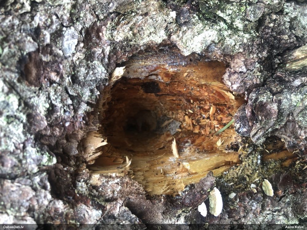 Mežiņā pie mājām, kļavā ieurbtā caurumā (sulām).