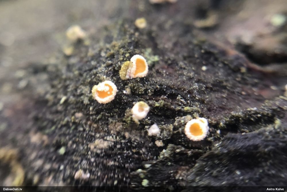 Raivo, nebūs Chaenotheca furfuracea, bet gan C.brachypoda (dabisku mežu indikatorsuga). C.furfuracea ir ar izteiktu laponi, daudz lielāki aķ un košāk zaļa krāsa