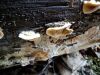 Satrūdējusi kritala mežā, nav dēļi. Iespējams, egle, jauktu koku mežs.