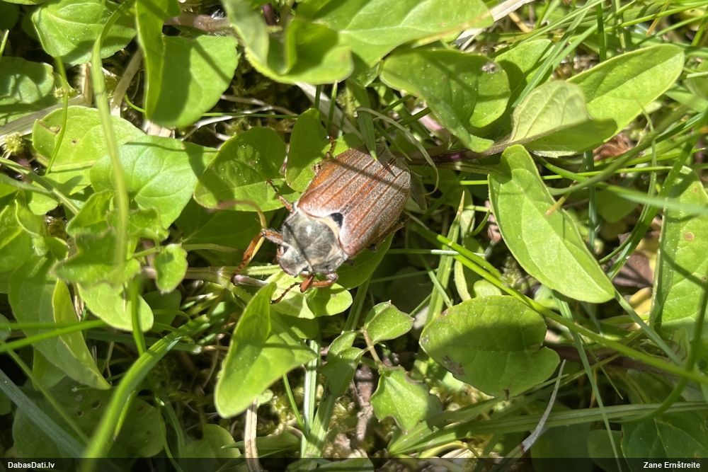 Jāredz tuvāk (kaut vai izkadrēts šis pats attēls) - varbūt tumšā eļļasvabole (Meloe proscarabaeus)