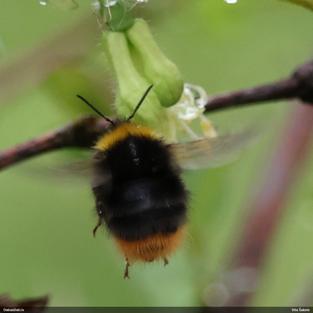 Jāredz tuvāk (kaut vai izkadrēts šis pats attēls) - varbūt tumšā eļļasvabole (Meloe proscarabaeus)