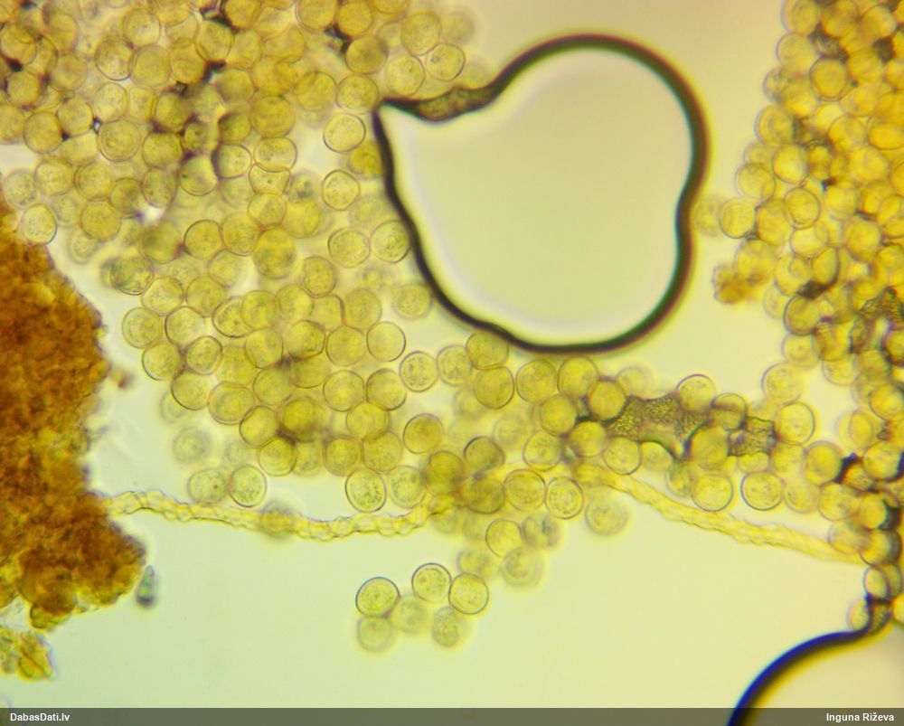 Sporas izskatās ļoti gaišas, varbūt nenobriedušas. Es laikam pēc kāda laiciņa mēģinātu vēlreiz mikroskopēt. Tajā pašā laikā sporu izmēri priekš T.contorta ir pamazi (ja tipiski ir 11-14 mkm, te ir knapi 11 mkm)