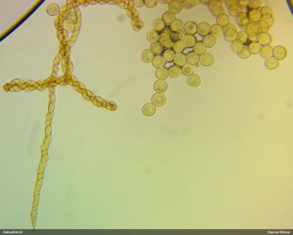 Sporas izskatās ļoti gaišas, varbūt nenobriedušas. Es laikam pēc kāda laiciņa mēģinātu vēlreiz mikroskopēt. Tajā pašā laikā sporu izmēri priekš T.contorta ir pamazi (ja tipiski ir 11-14 mkm, te ir knapi 11 mkm)