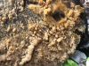 Satrūdējusi kritala mežā, nav dēļi. Iespējams, egle, jauktu koku mežs.