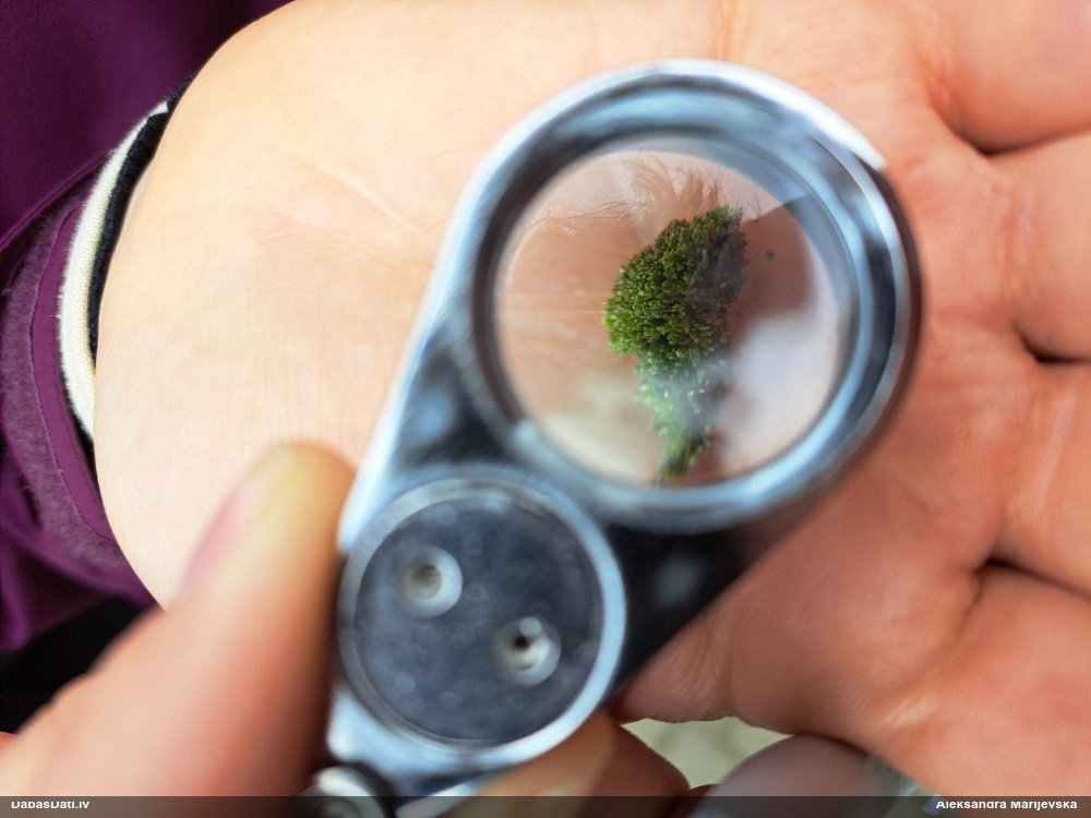 Paldies, Raivo! Ar acu gaišumu man arvien sliktāk, bet mikroskops palīdz. Jā, gribēju teikt, ka paraugam, ja vien nav kāda jutīga atradne, kurai drīkst ievākt tikai mazu gabaliņu, vērts ievākt lielāku gabalu, jo gļotsēnēm patīk kompānija. Un mikroskopa mazajos palielinājumos ar sānu papildus apgaismojumu ir vērts rūpīgi "izstaigāt" visu paraugu. Arī ķērpjus un interesantas sīksēnītes tā var atrast, ko dabā nepamanītu. Ar kriksītēm ir dažādi - pirmās es tā arī tikai citu sugu paraugos pamanīju, bet vēlāk redzēju arī dabā kriskīšu plantācijas - ja to ir daudz, tad var pamanīt jau dabā. Uz sūnām gan ir ekstrēms gadījums, dabā droši nepamanītu, arī eksemplāra noņemšana no sūnas nebija pārāk veiksmīga, tāpēc par noteikšanu mazliet šaubos (sporām mazliet cits tonis). Bet pagaidām citas hipotēzes nav (un konkrētā eksemplāra arī vairs ne).