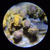 Man pēkšņi radās ideja - vai tur bija nu ļoti mitrs mikroklimats, egle ar melnalksni? Hipotētiski tādas dzeltenas var būt Diachea muscorum. Te bilde ir mazliet līdzīga: https://fr.wikipedia.org/wiki/Fichier:Craterium_muscorum,_Trawscoed,_North_Wales,_Aug_2016_-_Flickr_-_janetgraham84.jpg