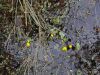 Man pēkšņi radās ideja - vai tur bija nu ļoti mitrs mikroklimats, egle ar melnalksni? Hipotētiski tādas dzeltenas var būt Diachea muscorum. Te bilde ir mazliet līdzīga: https://fr.wikipedia.org/wiki/Fichier:Craterium_muscorum,_Trawscoed,_North_Wales,_Aug_2016_-_Flickr_-_janetgraham84.jpg