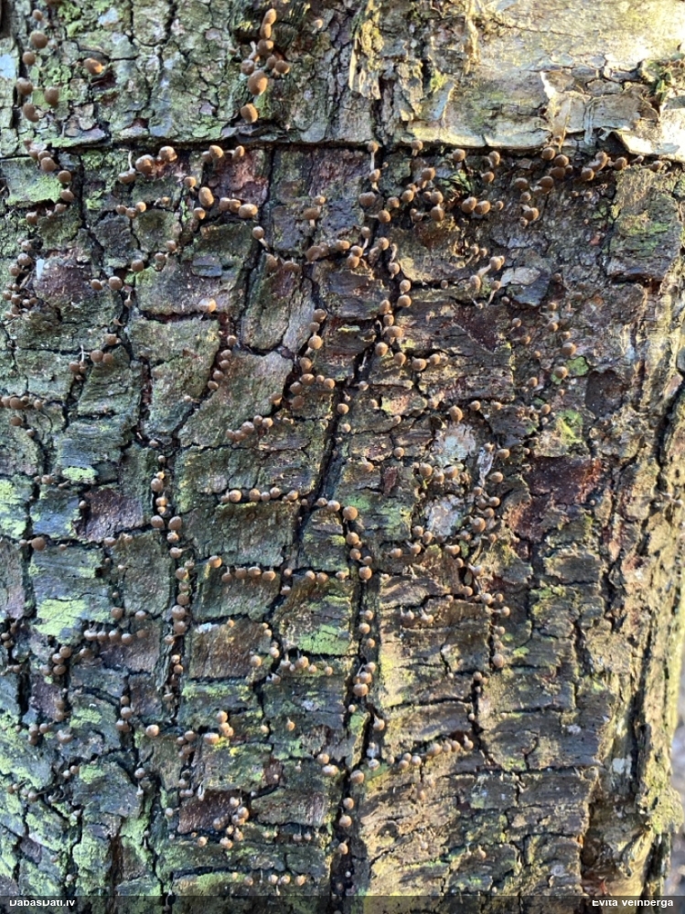 Raivo, nebūs Chaenotheca furfuracea, bet gan C.brachypoda (dabisku mežu indikatorsuga). C.furfuracea ir ar izteiktu laponi, daudz lielāki aķ un košāk zaļa krāsa