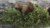 Man pēkšņi radās ideja - vai tur bija nu ļoti mitrs mikroklimats, egle ar melnalksni? Hipotētiski tādas dzeltenas var būt Diachea muscorum. Te bilde ir mazliet līdzīga: https://fr.wikipedia.org/wiki/Fichier:Craterium_muscorum,_Trawscoed,_North_Wales,_Aug_2016_-_Flickr_-_janetgraham84.jpg