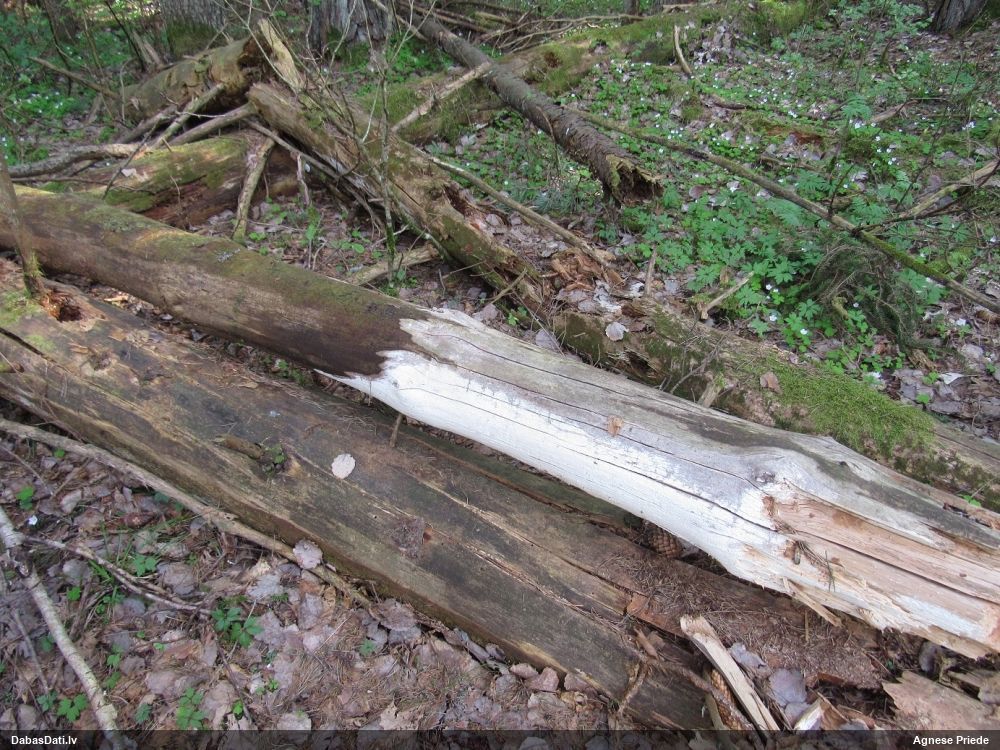 Satrūdējusi kritala mežā, nav dēļi. Iespējams, egle, jauktu koku mežs.