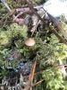 Satrūdējusi kritala mežā, nav dēļi. Iespējams, egle, jauktu koku mežs.