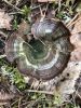 Satrūdējusi kritala mežā, nav dēļi. Iespējams, egle, jauktu koku mežs.