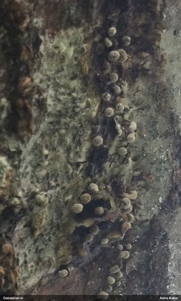 Raivo, nebūs Chaenotheca furfuracea, bet gan C.brachypoda (dabisku mežu indikatorsuga). C.furfuracea ir ar izteiktu laponi, daudz lielāki aķ un košāk zaļa krāsa