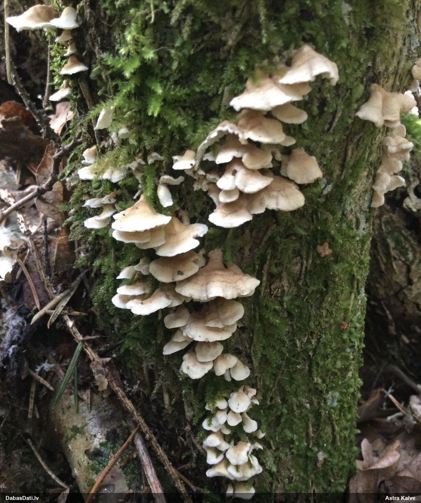 Es teiktu, ka Pleurotus cornucopiae: Cepurītes krāsa tik gaiši bēša nav pat vairākkārt salušām P.osteatus, bet šīs ir svaigi izaugušas. Lapiņas izteikti vērstas uz leju un veido kātiņa apakšā neregulāru rakstu, ko sauc par "anastomozes" tīklu.