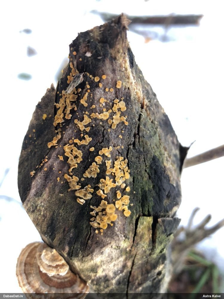 лимонно-желтая калицелла Bisporella citrina