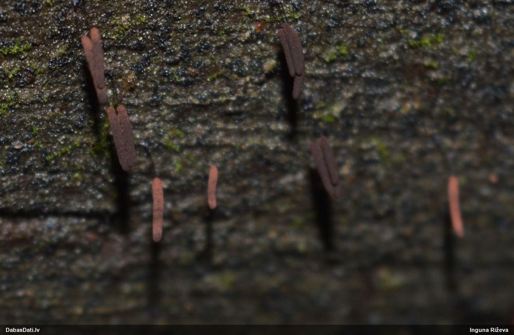 Teiktu, ka medainā bumbulīte. Redz vertikāli izstieptus augļķermeņus (ne pilienveida).