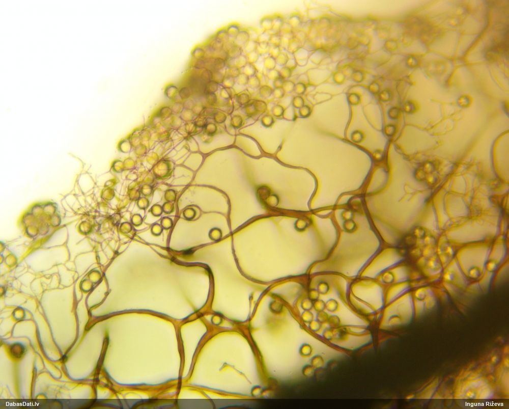 Šis man pašai sanāca pārsteigums. Ievācu paraugu ar domu "varbūt tur ir gļotsēne", dodot varbūtību apmēram pusprocentu, ka ir. Bet no mikroskopijas starp galīgi vecām sporām izdevās atrast ne tikai dažas labas, bet, galvenais, arī perfektus kapilīcija fragmentus, no kura suga, vēl kopā ar sporu pazīmēm, nosakāma nešaubīgi.