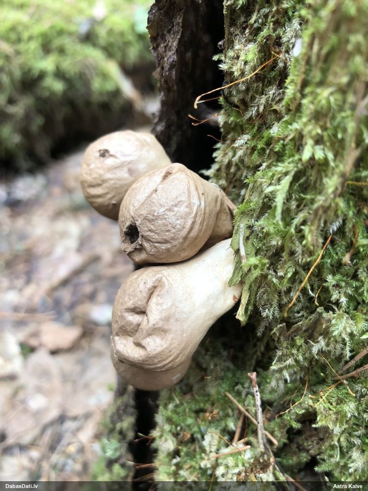 Teiktu, ka medainā bumbulīte. Redz vertikāli izstieptus augļķermeņus (ne pilienveida).