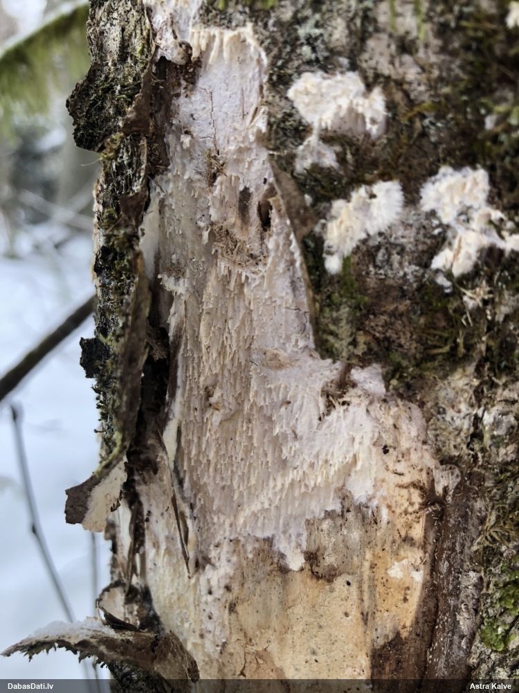 Raivo, nebūs Chaenotheca furfuracea, bet gan C.brachypoda (dabisku mežu indikatorsuga). C.furfuracea ir ar izteiktu laponi, daudz lielāki aķ un košāk zaļa krāsa