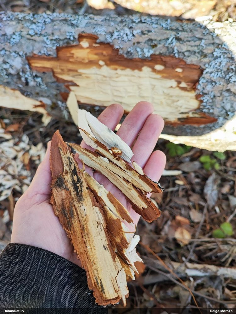 Jā, zem mizas uz nokaltušas priedes.