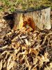 Satrūdējusi kritala mežā, nav dēļi. Iespējams, egle, jauktu koku mežs.