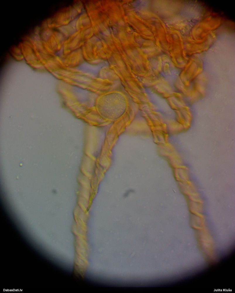 Sporas izskatās ļoti gaišas, varbūt nenobriedušas. Es laikam pēc kāda laiciņa mēģinātu vēlreiz mikroskopēt. Tajā pašā laikā sporu izmēri priekš T.contorta ir pamazi (ja tipiski ir 11-14 mkm, te ir knapi 11 mkm)