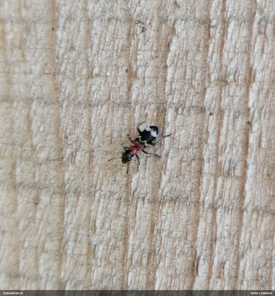 Jāredz tuvāk (kaut vai izkadrēts šis pats attēls) - varbūt tumšā eļļasvabole (Meloe proscarabaeus)