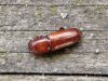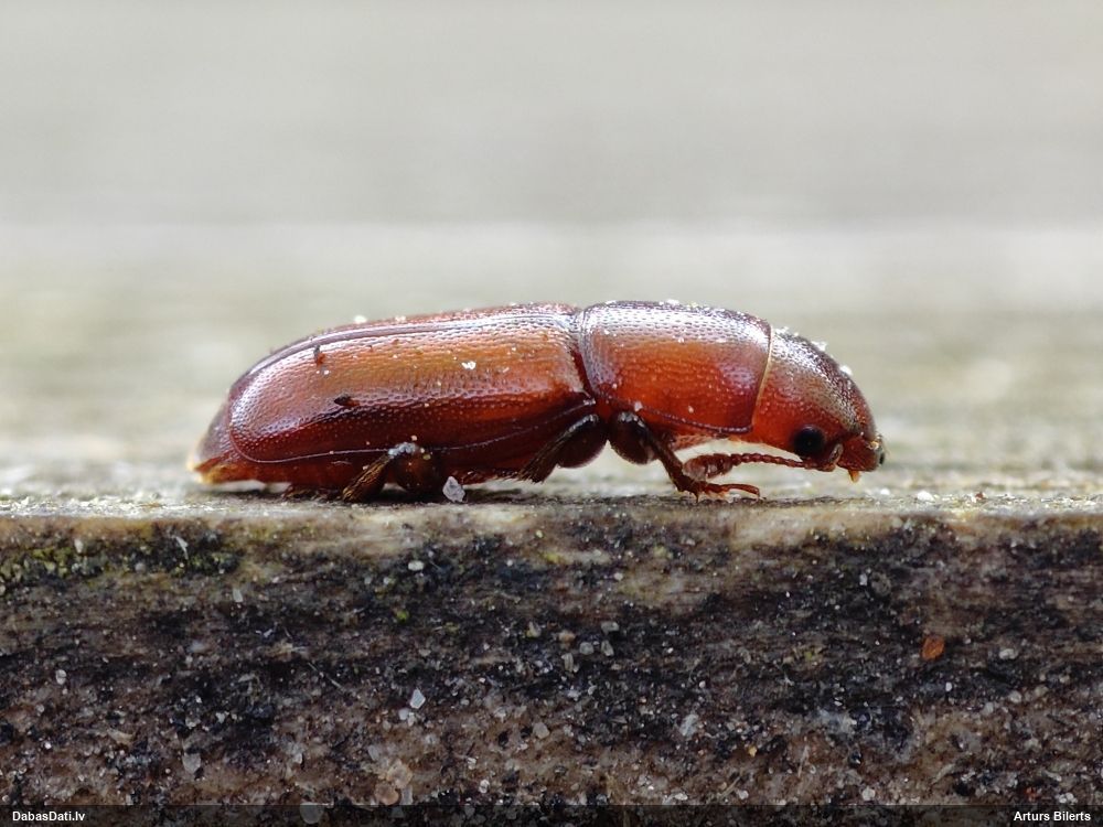 Jāredz tuvāk (kaut vai izkadrēts šis pats attēls) - varbūt tumšā eļļasvabole (Meloe proscarabaeus)
