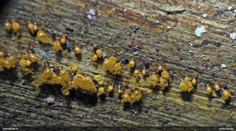 Šobrīd divas versijas - Physarum psittacinum un P.braunianum. Bez paraudziņa te skaidrīzā netiks, bet biotops interesants