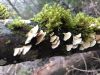 Satrūdējusi kritala mežā, nav dēļi. Iespējams, egle, jauktu koku mežs.