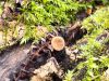 Ja uz beigta koka, tad ticamākā laikam ir B.affinis var. microspora, lai gan tā aug uz mizas. Bet varbūt tieši apakšā gļotsēnēm ir kādi mizas fragmentiņi?