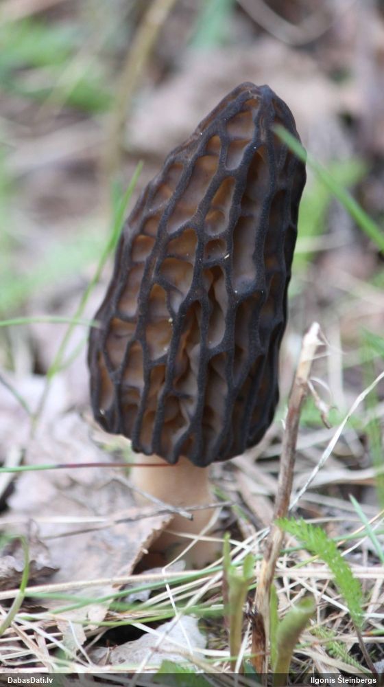 Teiktu, ka medainā bumbulīte. Redz vertikāli izstieptus augļķermeņus (ne pilienveida).