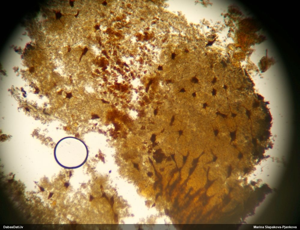 Sporas izskatās ļoti gaišas, varbūt nenobriedušas. Es laikam pēc kāda laiciņa mēģinātu vēlreiz mikroskopēt. Tajā pašā laikā sporu izmēri priekš T.contorta ir pamazi (ja tipiski ir 11-14 mkm, te ir knapi 11 mkm)