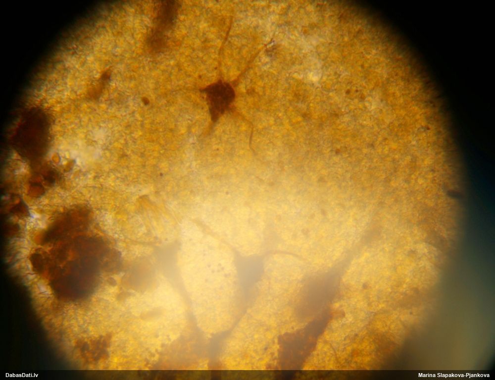 Sporas izskatās ļoti gaišas, varbūt nenobriedušas. Es laikam pēc kāda laiciņa mēģinātu vēlreiz mikroskopēt. Tajā pašā laikā sporu izmēri priekš T.contorta ir pamazi (ja tipiski ir 11-14 mkm, te ir knapi 11 mkm)