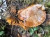 Satrūdējusi kritala mežā, nav dēļi. Iespējams, egle, jauktu koku mežs.