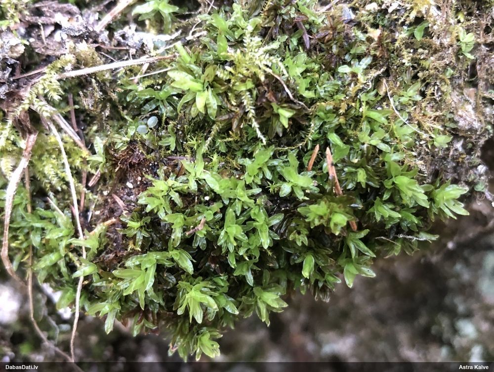 Man jau šķiet, ka cenšanās tikt pie nosaukuma bijusi tik veiksmīga, ka neredzu pat vajadzību mikroskopēt :), apskatīju tikai tuvplānā un pamērīju garumu (kas te nebija), bet kājiņa ir proporcionāli gara (nevis īsa, kā rakstīts), kas arī redzams 1.-2.foto. Bet interesantākais te ir cits - uz sūnas atradās arī jauka kriksīte, kuru ielikšu atsevišķā novērojumā. Ieteiktu nākmreiz nejauši ievākt mazliet vairāk eksemplāru, ne vienu vien. :D