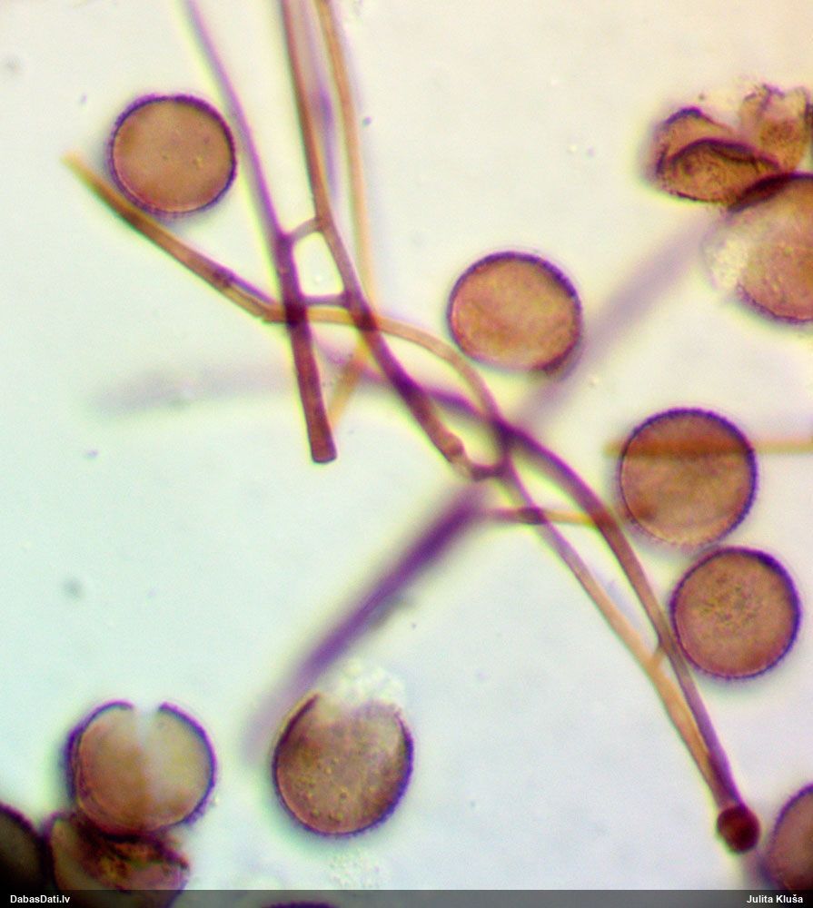 Šis man pašai sanāca pārsteigums. Ievācu paraugu ar domu "varbūt tur ir gļotsēne", dodot varbūtību apmēram pusprocentu, ka ir. Bet no mikroskopijas starp galīgi vecām sporām izdevās atrast ne tikai dažas labas, bet, galvenais, arī perfektus kapilīcija fragmentus, no kura suga, vēl kopā ar sporu pazīmēm, nosakāma nešaubīgi.
