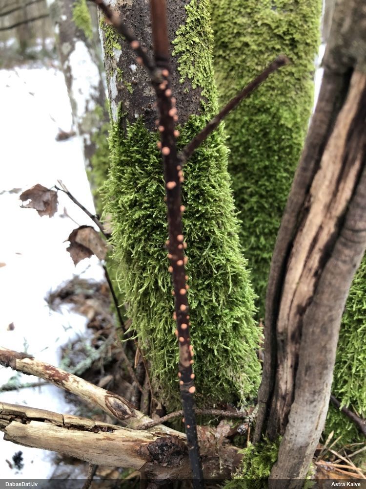 Raivo, nebūs Chaenotheca furfuracea, bet gan C.brachypoda (dabisku mežu indikatorsuga). C.furfuracea ir ar izteiktu laponi, daudz lielāki aķ un košāk zaļa krāsa