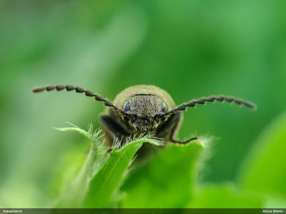 Jāredz tuvāk (kaut vai izkadrēts šis pats attēls) - varbūt tumšā eļļasvabole (Meloe proscarabaeus)