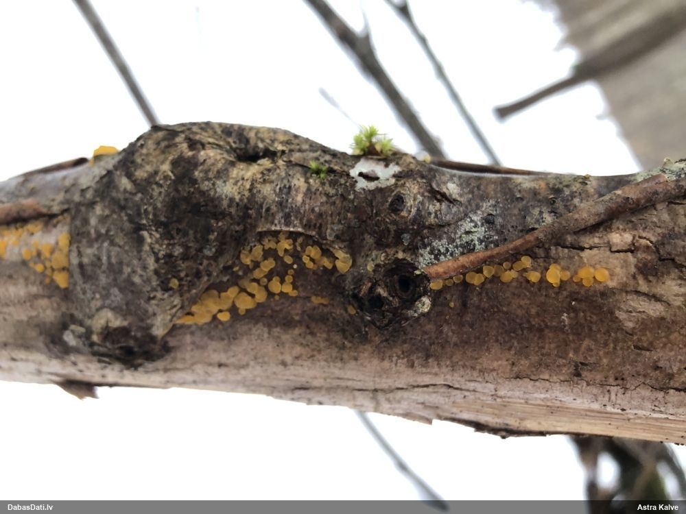 Priekš aurantiaca galīgi neatbilst jaunu augļķermeņu krāsa (kam sākumā jābūt zaļgani dzelteniem). Variants ir C.intricata, bet te mikroskopijā grūti saskatīt brīvo galu skaitu mezglos, tāpēc ātrumā droši noteikt nevaru.