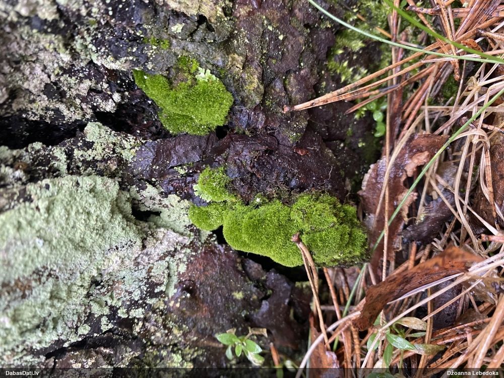 Raivo, nebūs Chaenotheca furfuracea, bet gan C.brachypoda (dabisku mežu indikatorsuga). C.furfuracea ir ar izteiktu laponi, daudz lielāki aķ un košāk zaļa krāsa