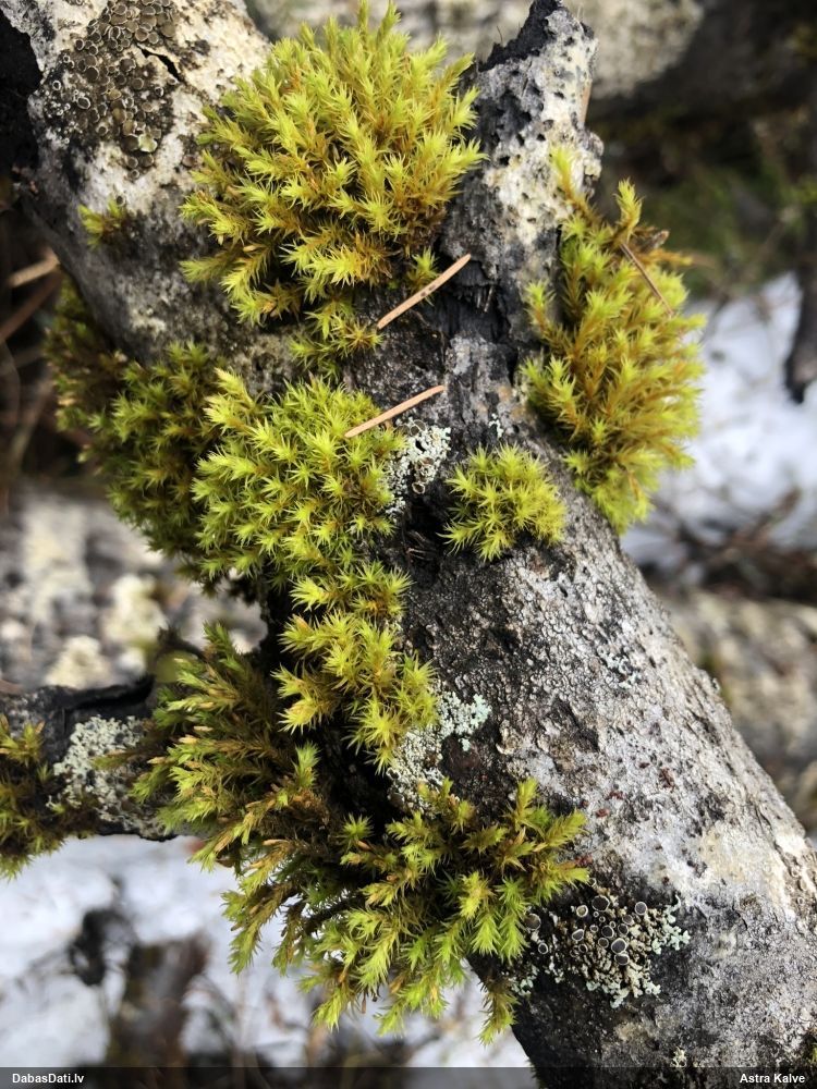 Raivo, nebūs Chaenotheca furfuracea, bet gan C.brachypoda (dabisku mežu indikatorsuga). C.furfuracea ir ar izteiktu laponi, daudz lielāki aķ un košāk zaļa krāsa
