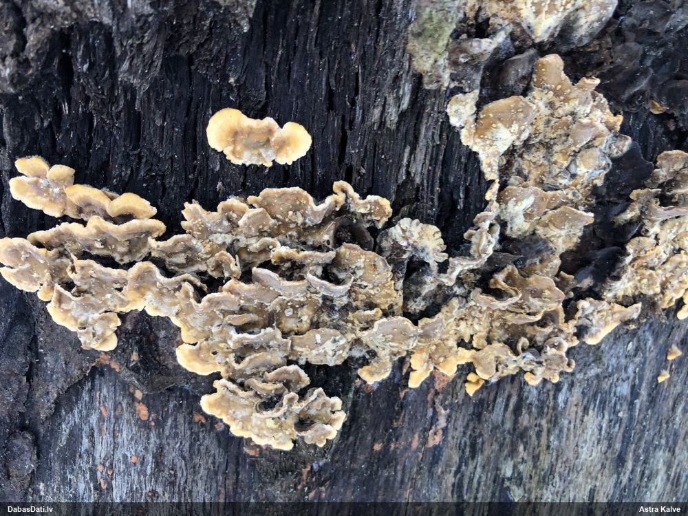 Domāju to Sorocybe resinae, ja tā, tad esmu soli tuvāk mērķim, nu zinu, kā izskatās un kur meklēt. Gļotsēnītes klāt gan nebija.