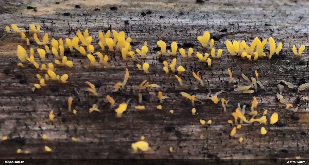 Teiktu, ka medainā bumbulīte. Redz vertikāli izstieptus augļķermeņus (ne pilienveida).