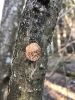 Šobrīd varu iedomāties 2 variantus - melnā plaispika Amaurochaete atra vai parastais gļotpūpēdis Reticularia lycoperdon. Pēc izmēra, augšanas laika un augšanas uz apstrādāta koka atbilst abas.