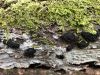 Satrūdējusi kritala mežā, nav dēļi. Iespējams, egle, jauktu koku mežs.