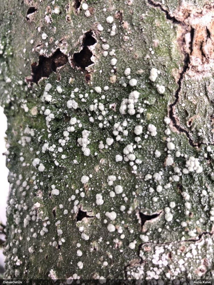 Raivo, nebūs Chaenotheca furfuracea, bet gan C.brachypoda (dabisku mežu indikatorsuga). C.furfuracea ir ar izteiktu laponi, daudz lielāki aķ un košāk zaļa krāsa