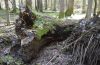 Satrūdējusi kritala mežā, nav dēļi. Iespējams, egle, jauktu koku mežs.